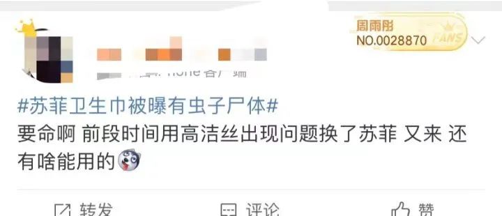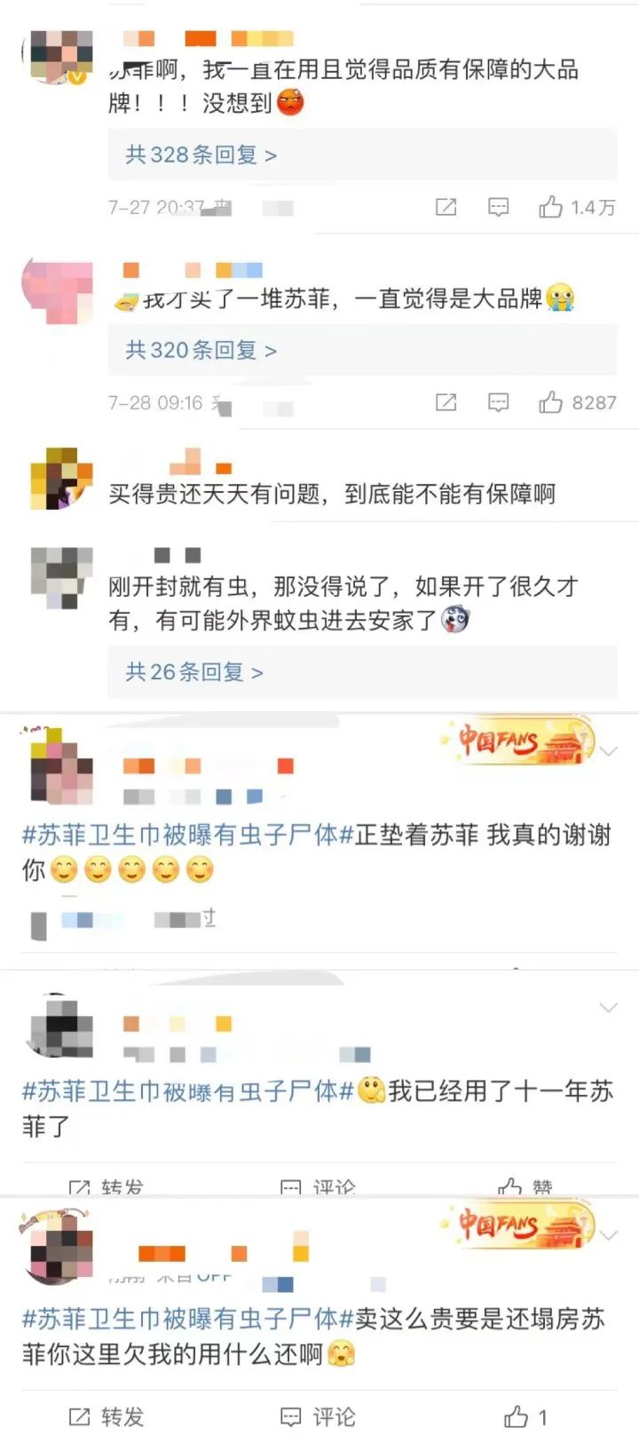 今天,“苏菲卫生巾被曝有虫子尸体”话题登顶热搜第一。