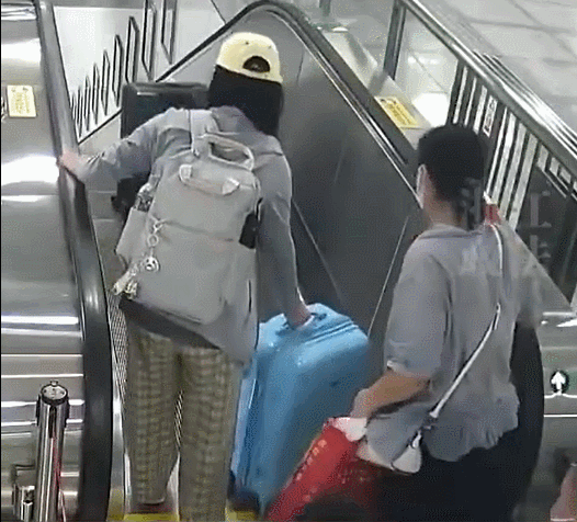 2021年12月23日,上海地铁17号线虹桥火车站站台层的自动扶梯出口处,一名乘客手拿行李箱乘坐电梯时,看管不慎,行李箱将后方一名女性乘客带倒。事发后,工作人员迅速前往现场处置,女子并无生命危险。
