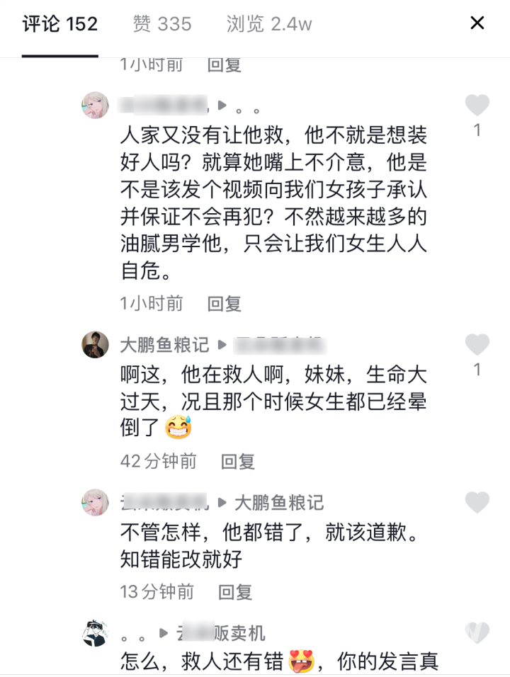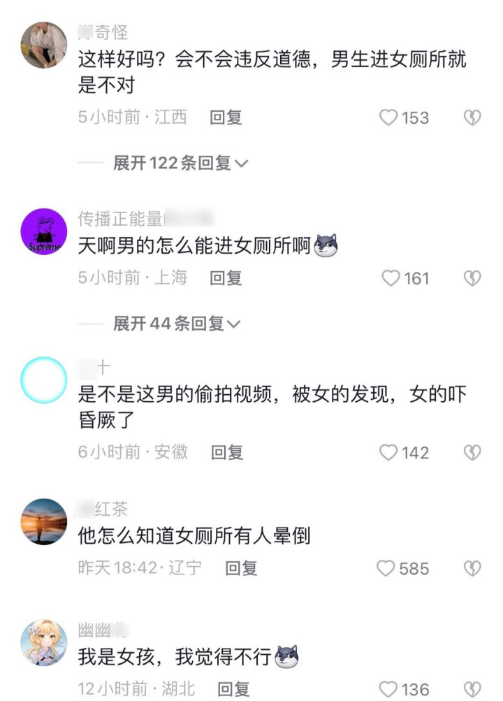 橙柿互动浏览了相关视频的评论,林师傅救人的行为,却被部分网友指责男性进女厕所,不妥当。
