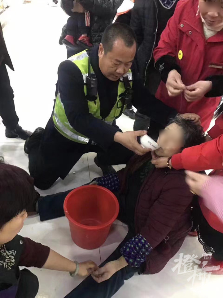 卫生间门口人来人往,地上又潮湿,不利于病人,林师傅马上把老奶奶背到超市进行救治。经过大家10多分钟的努力,老奶奶终于清醒过来。