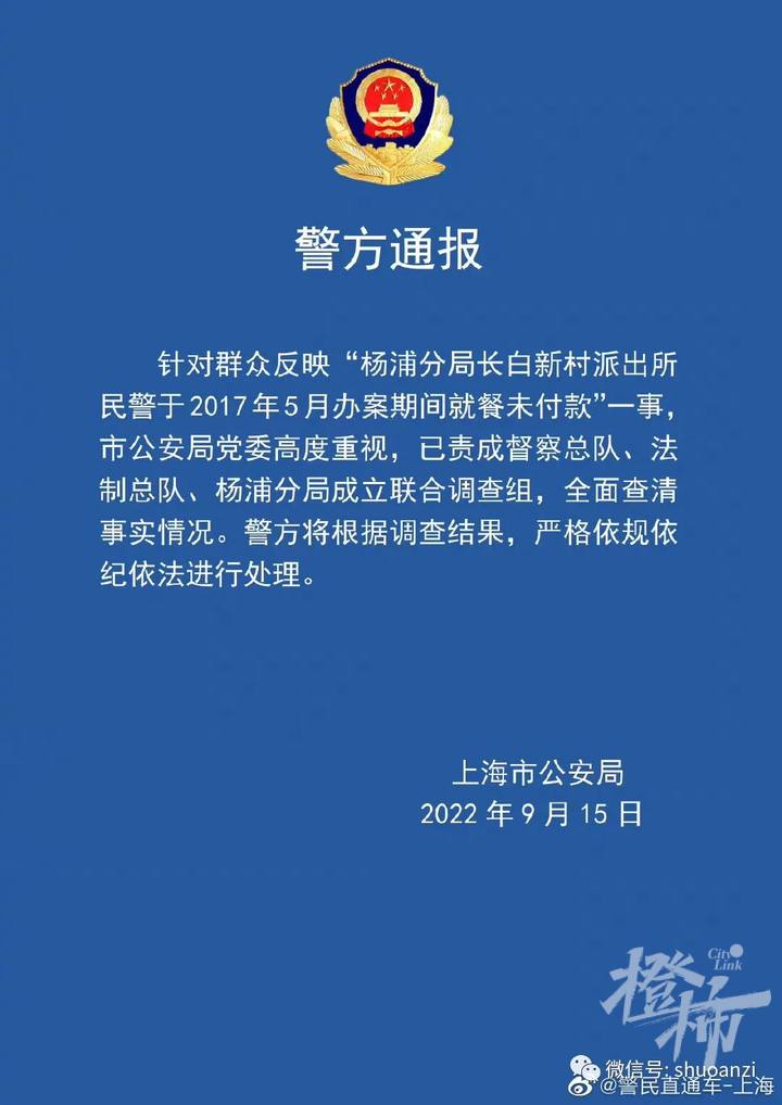 橙柿互动消息 昨晚(9月15日)9点刚过,上海警方发布警方通报: