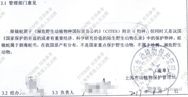 上海动植物保护管理站在2017年6月1日出具的一份鉴定写明了这点。