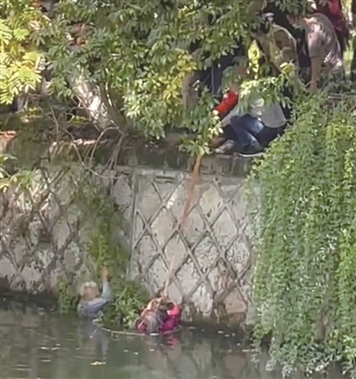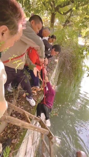 “本来我也想下去救人,但当时已经有人拿绳子来了。再后来,帮忙的人越来越多,有的拿笤帚,有的拿绳子,有的拿梯子……人救上来之后,有的拿被子,有的脱下衣服给孩子裹着,好心人很多。”
