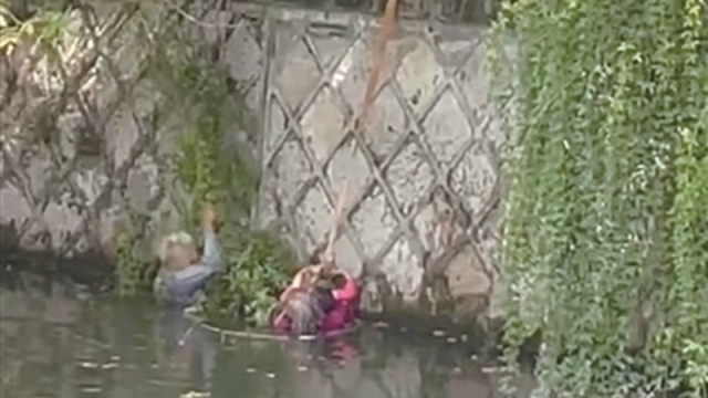 “当时有个人路过,发现河边不对劲,水在动,一看河里,一个老奶奶抱着一个小孩,估计老奶奶吓着了,话都不敢说。”