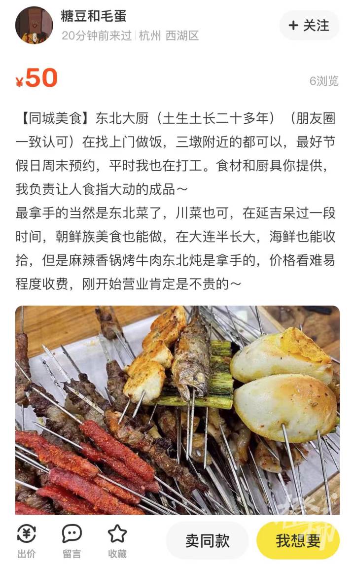 橙柿互动留意到,在网络上,像小赵这样的私厨服务,大有人在。