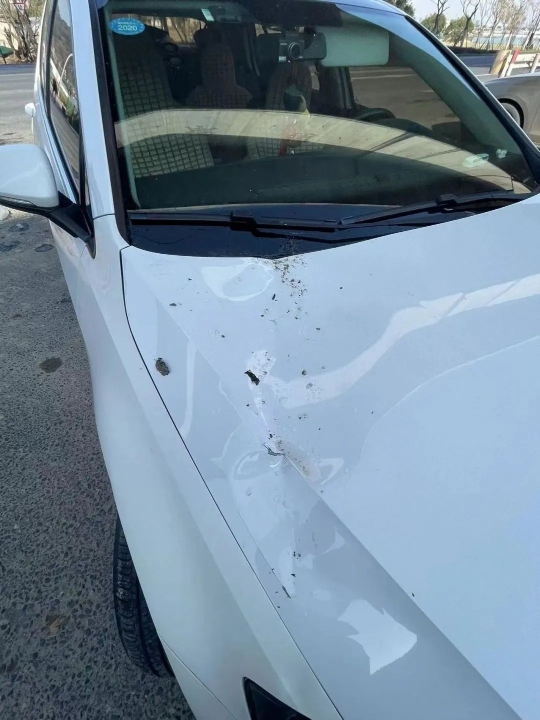 据倪女士回忆,12月24日,在途径萧山区戴村镇戴何线与103省道交叉口时,路口上方杭黄铁路高架桥底的一根冰棱突然坠落,重重地砸在倪女士的车上,当场就把车引擎盖砸出个近1米宽的“坑”。