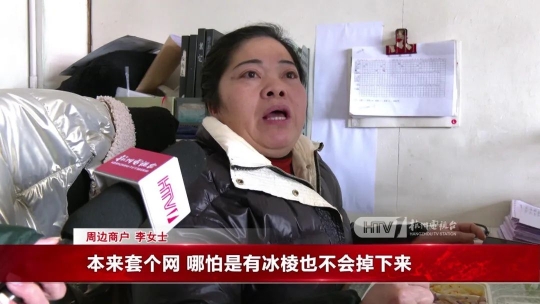“我送我爸过马路的时候它掉下来,差点被砸到,本来如果套个网的话,哪怕有冰锥也不会掉下来,这真的是安全隐患。”