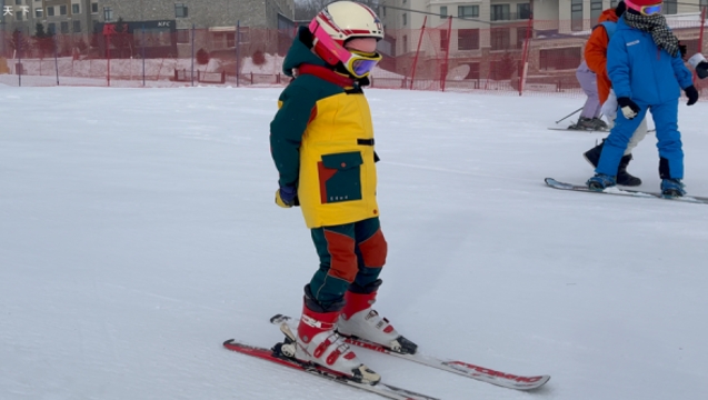 一大早,小伢儿们就全副武装,登上了亚布力滑雪场的滑雪赛道,打算一展身手。零下二三十度的低温挡不住孩子们对冰雪运动的热情,他们有的在教练指导下独闯赛道,有的全家上阵一起向前冲……