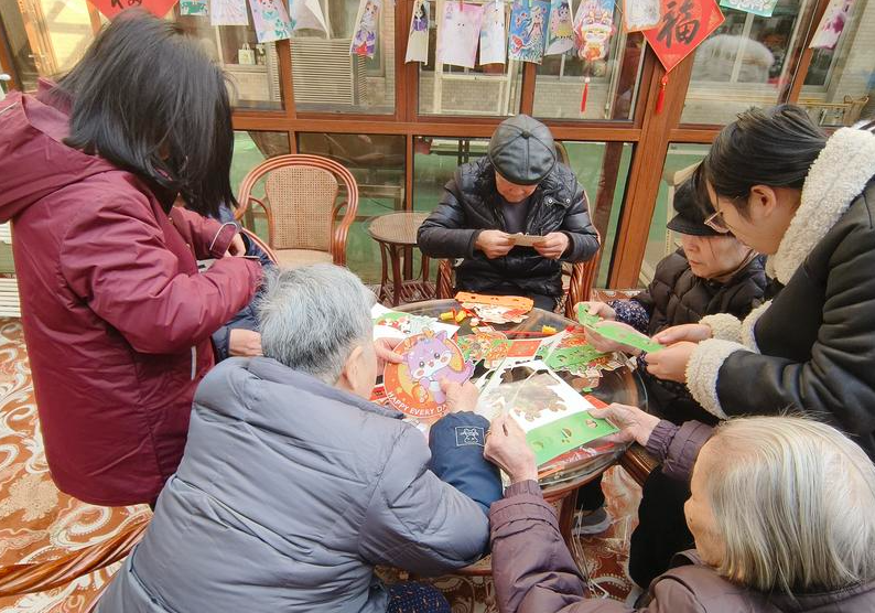 “元宵佳节·灯笼传情”手工活动让长者们化身“非遗匠人”。彩纸裁剪、彩绳缠绕……在志愿者的协助下,一盏盏独一无二的花灯悄然成型。老人们笑称:“没想到自己还能当一回‘手艺人’!”活动既锻炼了动手能力,更让传统文化在指尖流淌。