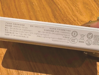 “购买时要检查包装上的厂家信息、防伪码以及‘CCC’标志和使用年限标志,圆形箭头里面比如有个‘5’,就是产品使用年限为5年。购买时也要看充电宝的电芯,锂聚合物电芯相对安全性更高。充电宝使用中要尽量避免碰撞、挤压或强烈振动,控制好充或放时间。”