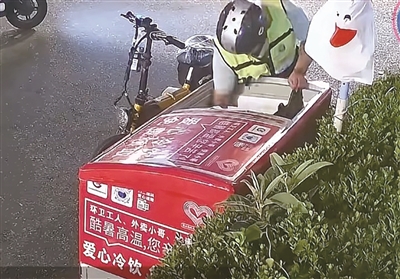 7月19日,“爱心冰箱”管理者在抖音号发布了一条短视频,一男子身着某代驾平台马甲,连续多日凌晨来到“爱心冰箱”,用一只黑色塑料袋把瓶装水整袋装走。7月16日1:45,男子拎走了一袋矿泉水。7月6日4:28,他拎着一袋瓶装矿泉水离开。7月7日3:14,他用黑色塑料袋提走矿泉水时,冲着“爱心冰箱”的监控挥手。