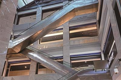 9月22日下午,记者在现场看到,城北少年宫西门与工美博物馆北门通过中庭一楼连通,西侧是上行自动扶梯,东侧是下行自动扶梯,南侧有两台垂直电梯。