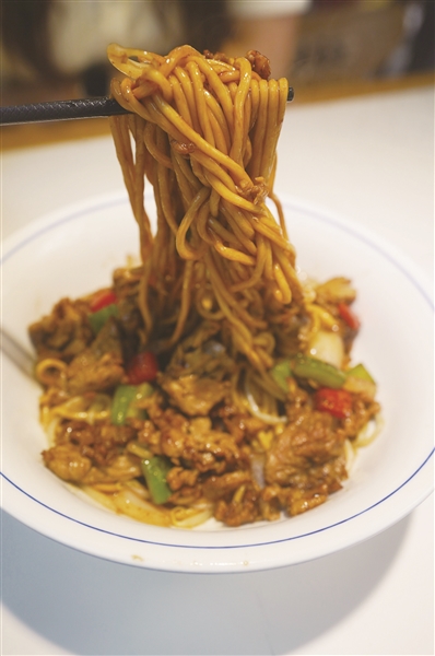 每碗面都是三两,“分量刚好,男生够吃,女生吃不完还能打包,不浪费”。金龙说:“用机器煮面抢时间,同时保证浇头现炒的鲜,让上班族忙里偷闲也能吃口好的。”