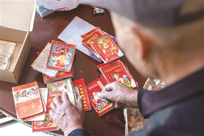 杨福生家是一幢漂亮的三层小楼。他找出46本日历,摊在一楼客厅沙发上,笑着说:“这么多年我一直藏着,还好没被孙女找到……”