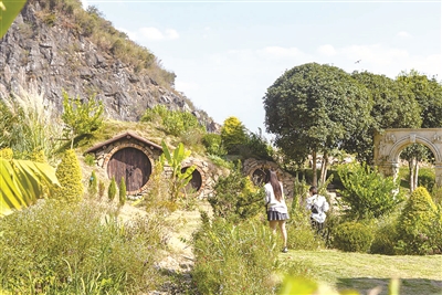 周富村72岁的杨德金,骑着三轮车从家来到“旷野空间”园区上班。当年这里曾是附近最大的采石场,长年爆破开采把100多米高的山体劈开一半,如今成了景观奇特的悬崖牧场。