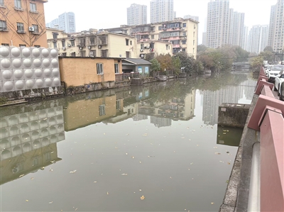 接到反映后,橙柿直通车记者来到工人路与二棉路交叉口的施家桥河道,河面确实漂浮着树叶。