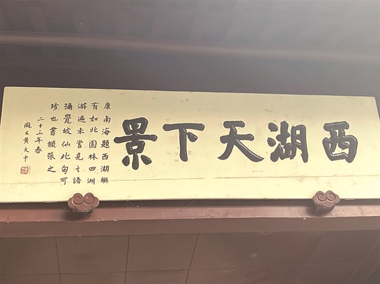 据了解,“西湖天下景”的匾额和楹联由于曾经被毁,恢复过程经历过一番波折。