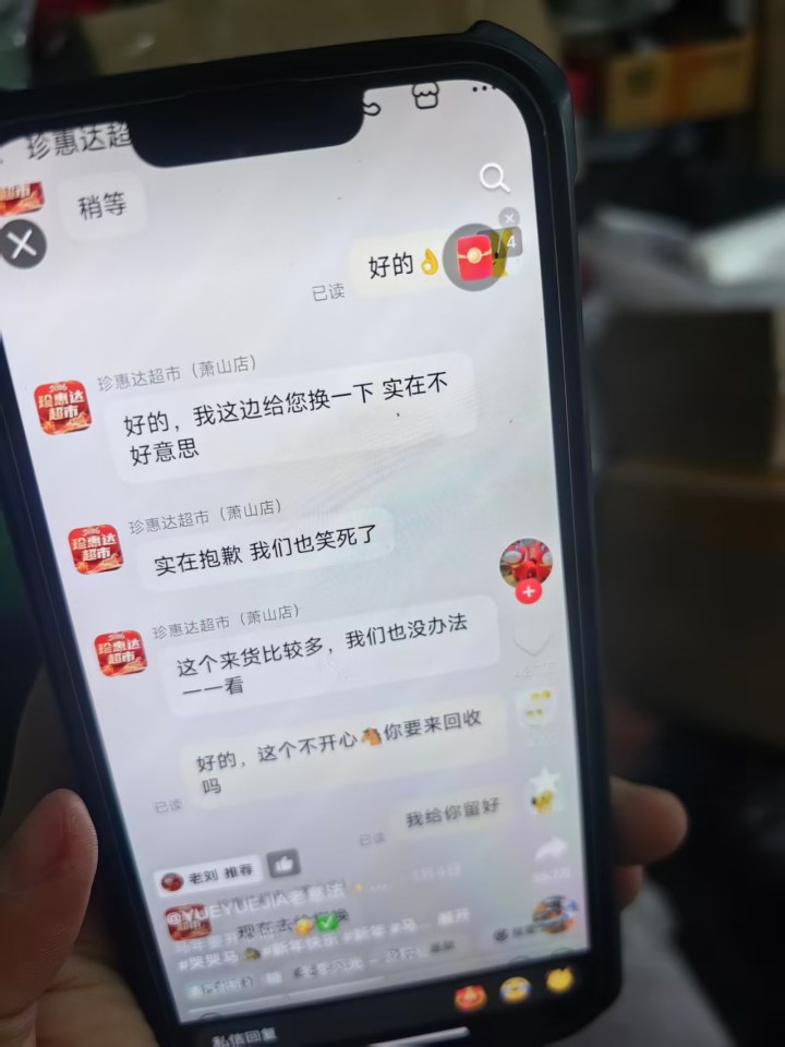记者了解到,采购商是从萧山珍惠达超市萧山店进的货。这是萧山合丰社区的一家网上连锁超市,不对外经营,门口只有对“小哥”的一个窗口,顾客从网上下单,“小哥”从超市取单。