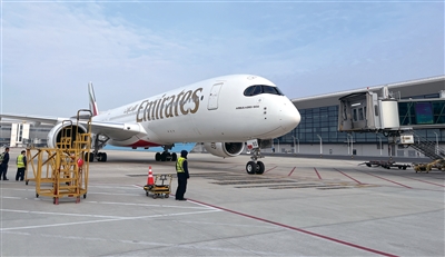 复航后的首个EK310航班落地杭州