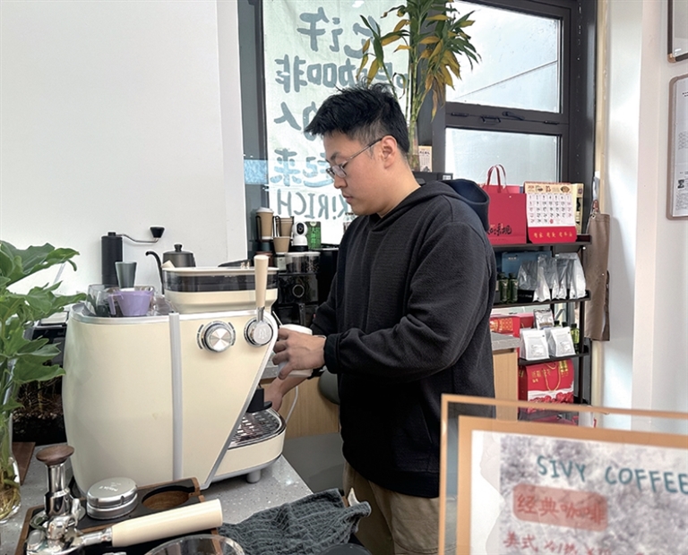 马瑞在做咖啡 记者 徐萌 摄