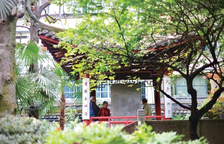 走进梅石园,丁老认真打量着这座小小园林,脸上满满的情感。