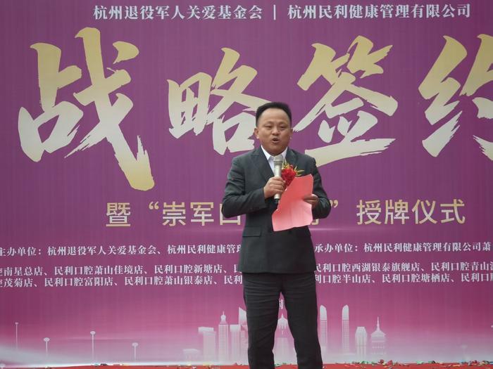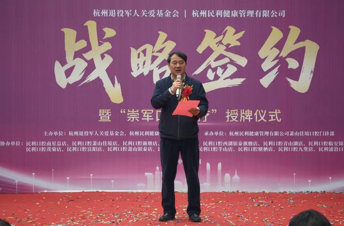 杭州民利健康管理有限公司董事长李利生感谢各级领导和杭州退役军人关爱基金会的信任与认可,将这块沉甸甸的“崇军口腔医疗单位”匾牌授予民利口腔,深感使命光荣,责任重大。他表示,将以最坚定的决心,最务实的行动,全力以赴做好退役军人的医疗优待服务工作。