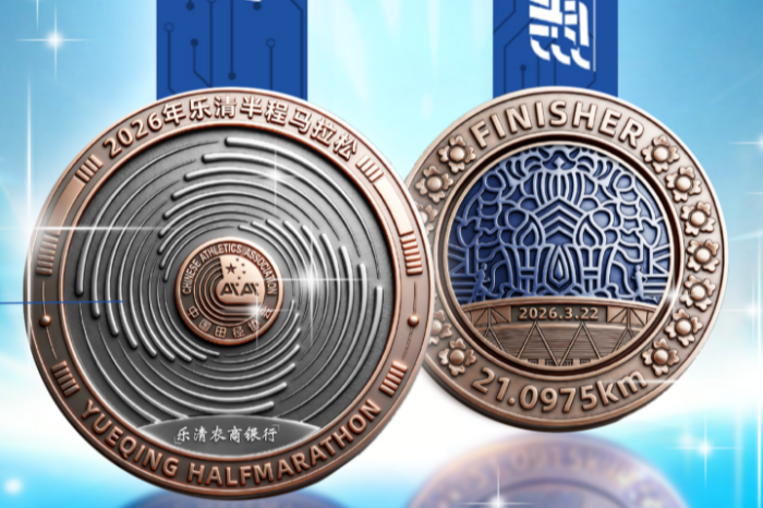 发布会上,赛事的参赛服和奖牌亮相。参赛服的蓝黄主色调呼应乐清地域与春日特色,融合马元素与城市道路肌理。完赛奖牌则以“科技与非遗共生”为核心,正面贴合乐清电器、模具产业的科技属性,背面融入国家级非遗“蓝夹缬”与乐清体育中心地标,还植入NFC芯片,可查询完赛证书与成绩。