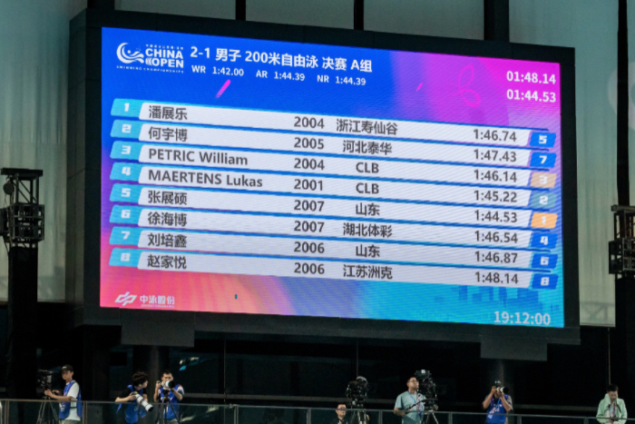 3月19日,2026年中国游泳公开赛暨全国春季游泳锦标赛迎来了首个比赛日,在当晚的决赛中,山东选手张展硕以1分44秒53的好成绩,力压德国名将卢卡斯·马腾斯获得冠军,创造个人最好成绩的同时,刷新了由他自己保持的全国青年纪录。浙江选手潘展乐以1分46秒74排名总成绩第五位。