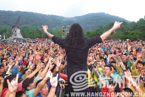 乐队成员对舞台周围的风景很有兴趣,掏出相机拍个不停。第一次来中国,第一站就是西湖音乐节,他们之前并不清楚西湖,但见识了以后,“这个舞台很奇妙很美丽,我们始料未及。只是我们不了解这里的观众,但愿他们会喜欢我们的音乐。”等到表演结束,他们发现,自己的担心完全是多余的。