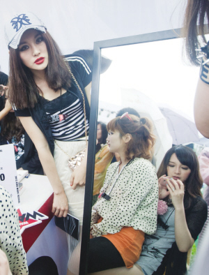 淘女郎在酷舞台守候变身。