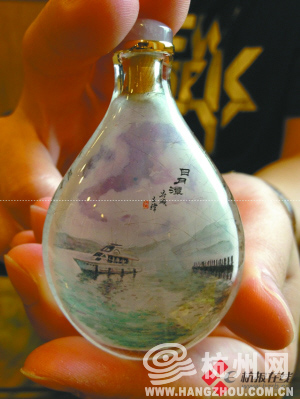 后看壶形。内画壶讲究磨制工艺,制作者在一块料上打眼后利用工具进行掏空、打磨,特别肩膀位置难度最大。如壶能漂在水上,最佳。