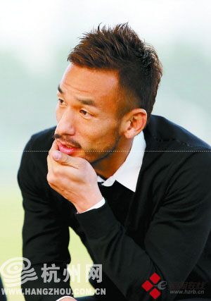 眼前的中田英寿很难将他同足球运动员联系起来,擦着发蜡的短发、白衬衣领翻出外套,牛仔裤的两个裤脚边都被卷起,配上黄色的商务潮鞋,出现在绿城基地的中田英寿俨然一副娱乐圈型男的范儿。