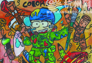 我最喜欢的是26号徐得超的作品,这幅画给人很愉快、开心的感觉,绘画能力很强。而且从画中能看出作者性格,这是一个喜欢军事题材的男孩。