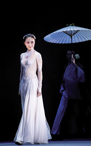 剧中两位女主角秦海璐和袁泉,是中戏表演系的同班同学,也是目前戏剧舞台上两个炙手可热的女演员。袁泉主演了《简爱》,秦海璐也演过《红玫瑰与白玫瑰》、《四世同堂》等话剧。这一回,两位同学在田沁鑫的戏中“双剑合璧”,分别扮演小青和白娘子。巧的是,两人过去都是京剧演员,有着扎实的戏曲基本功,身段那叫一个美。于是,演出一开场便让人惊艳:水纹荡漾、雾气弥漫,一青一白两袭长裙飘逸,尽现曼妙曲线。