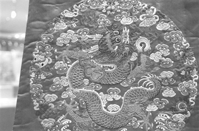 龙袍不仅皇帝能穿,这件就是典型的晚清满族宫廷女子所穿的八团袍服,底色是红色,上绣八个团龙,其中前胸、后背处以盘金彩绣有三团升龙纹(龙头朝上),两肩、两袖绣有行龙(侧身的龙)。 龙袍上的龙,眼睛真是又大又圆,相信哪天要是能化成人形,必定是位大美女。 |