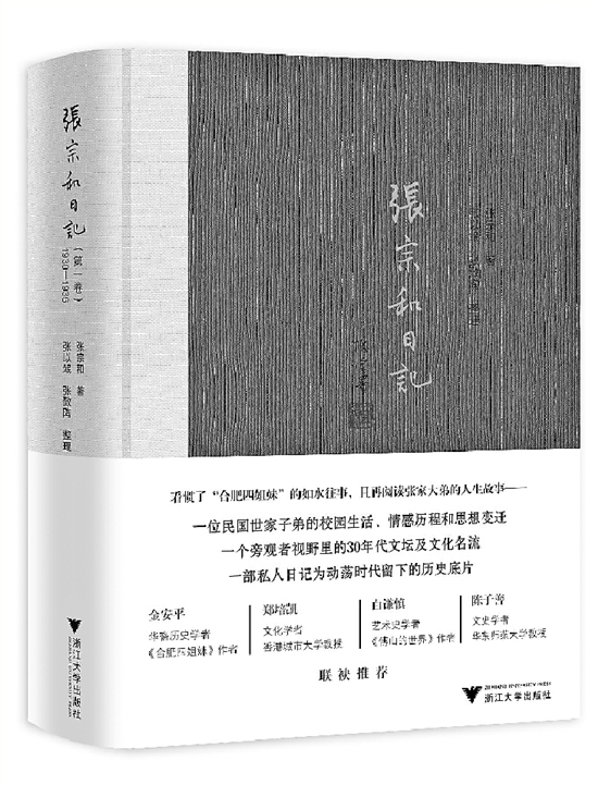 前排左起:张充和、张允和、张元和、张兆和 后排左起:张宁和、张宇和、张寅和、张宗和、张定和、张寰和 《张宗和日记》 张宗和 著 浙江大学出版社 大姐张元和、二姐张允和、三姐张兆和、小妹张充和,近十年来,曾居于苏州九如巷的张家四姐妹被不同的研究者书写,几乎每年都有一两本面世。 但是,关于张家六兄弟的出版物,却不多见。 2018年8月,浙江大学出版社推出了《张宗和日记(第一卷):1930-1936》并在上海书展上举行了首发式。 首发式请来了本书的整理者张以䇇女士——她是张宗和的女儿,以及香港城市大学教授郑培凯先生——他是张家的“远亲”。 “张家有姐妹兄弟十个人,这十个人的成长都非常有趣。”郑培凯说,只是大家平时所熟知的是四姐妹,“她们的生活十分精彩,嫁的人也都很出色。其实她们的六个弟弟生活也十分精彩。” 张宗和是这六个弟弟中的大弟,他毕业于清华大学历史系,执教于多所高校,后在贵阳师范学院(现贵阳师范大学)执教直至过世。 《张宗和日记》是“大弟”的私密记录,郑培凯说,它巨细靡遗地记载了一个时代的风采—— “翻开书页,不仅看到合肥四姐妹的窈窕身影,还见到周有光、沈从文、韦布、顾传玠、俞平伯、陈寅恪、钱穆、萧乾、赵景深、林徽因、梁思成、梅贻琦、钱伟长,以及抗战前后那些谦谦君子的群像。” 一个家庭 维系了新旧文化的融合 话题是从郑培凯的“远亲”说起的。 “《张宗和日记》里面提到一个张宗和的小舅舅,就是我太太的外公。”郑培凯说。 四姐妹的父亲张冀牗,续弦妻子叫韦均一,韦均一嫁到张家的时候,把她的弟弟韦布也带过去了。韦布跟张家的四姐妹、五个弟弟一起长大。后来张冀牗和韦均一生了一个男孩,就是张宁和。 十个孩子后来的人生,都非同寻常。这与他们成长的家庭密切相关。 张家是一个传统的大家庭,“它从淮军起家,后来好几代允文允武,是书香世家,也是贵胄家族,传统文化浸润很深。”但郑培凯强调,张冀牗是一个开明的新派人物,因此,孩子们的成长过程也是现代化新派的成长过程,“但是,他们也都喜欢传统文化里面最优秀的东西,最典型的例子就是昆曲。” “日记里提到,孩子们经常跟他们的爸爸、妈妈(韦均一)去看戏。”郑培凯说,从这个意义上说,张家维系了新旧文化的融合与发展。 一盆菊花 摆在沈钧儒监狱的床上 作为《张宗和日记》的编者,张以䇇认为,父亲的日记反映了比较现实的历史状态。 这一点,郑培凯也有提及。他说,从日记中可以看到1930年代张宗和的成长过程、他接触的人,以及比较具体的生活中显示出的人与人的关系:“我们知道的历史往往是一个很粗泛的概念,你不知道那些人怎么生活,他们接触哪些人,他们的兴趣是什么,在日记里,这些细节都有。” 2004年,张充和在北京办展览,当时,北京的现代文学馆很想收藏张宗和的日记。 “但是我的四姑和我母亲觉得日记里有很多隐私的东西,都没有同意。后来,四姑让我把日记整理一下,她说能够出版的话就出版。”张以䇇说,现代文学馆之所以想收藏这批日记,正是因为日记里牵涉到那个时代一些很重要的人物。 “我的三姑爹沈从文,我的二姑爹周有光,还有冰心、丁玲、曹禺,他们都是朋友,在一起教过书。我父亲在云大、西南联大的时候,跟朱自清、闻一多都是同事,相处得很好。” 这本日记里,还有很多以好玩的笔调讲述的小故事,但背后却是那个时代的大事件。 1936年,张宗和刚刚毕业,回到苏州。周有光让他到监狱里去看个人,送点桌子板凳进去。 张宗和就去了,弯弯曲曲的小路通向一排平房,平房里住着当时的“七君子”:沈钧儒、邹韬奋、李公朴、章乃器、王造时、史良、沙千里。 张宗和描绘了监狱的环境——木头床、铁床,沈钧儒的床上还摆了一盆菊花…… 一支钢笔 沈从文用它写了80封情书 张宗和从1930年到1977年,大大小小的日记写了73本(还有5本遗失)。在整理的过程中,张以䇇发现了父辈的诸多往事。 比如,一支钢笔在不同人之间的流转。 1933年,张宗和在北京,当时,沈从文和张兆和正在谈恋爱,只要沈从文和张兆和在一起,张宗和就会乖乖离开。 “沈从文觉得我父亲很懂事,有一次,他送我父亲一支钢笔,沈从文说自己用这支钢笔给我三姑写了80封情书。”看到这一段的时候,张以䇇就想到家里的确有一支很老的钢笔,她翻箱倒柜地去找,果然找到了:跟日记上写的牌子一样。 后来,这支钢笔被张宗和送给了一位逃难到贵阳的医生。这位医生医术很好,但是穷困到没有一支笔来写处方。这位医生过世后,他的妻子把钢笔还给了张家。 “这支钢笔前半生跟着一个大作家,拯救人们的灵魂;后半生又跟着一个医生,拯救人们的生命。”在整理父亲的日记时,张以䇇在琐碎小事当中,洞晓了当时的社会环境,还无意间发现很多以前不知道的事:比如,朱自清也喜欢昆曲,汪曾祺曾经是张宗和的学生,跟他学过昆曲。 8月首发的《张宗和日记》为第一卷,共收入张宗和先生自1930年至1936年记录的日记40本,除涉及个人隐秘的部分稍做删改,基本保留原貌。 第一卷的责任编辑罗人智介绍,浙江大学出版社拟在未来2-3年内再推出第二卷、第三卷、第四卷。 除了整理出版张宗和先生的全部日记,浙大社还拟整理出版张宗和先生与张家姐弟们的通信《九如巷家书》,并再版张宗和先生自印的《秋灯忆语》(记