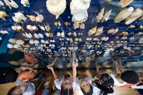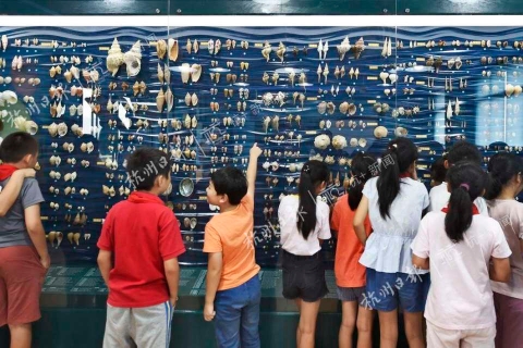 贝壳馆占据该校教学楼的一个楼层两间教室,在整体装饰成“海底世界”的馆区内,常设“有‘贝’而来——贝壳专题展”,展陈近600种1400余件中外珍奇贝类标本以及各种与贝壳相关的奇趣知识,还结合学校的自然科学教学内容,策划了配套的贝壳与生物多样性科普课程,并由该校学生出任小馆长和小讲解员,在湿地博物馆宣教人员的指导下,参与志愿管理,为校内外同龄观众提供讲解等服务。