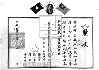 金庸初中时的奖状