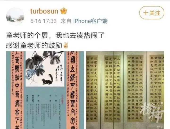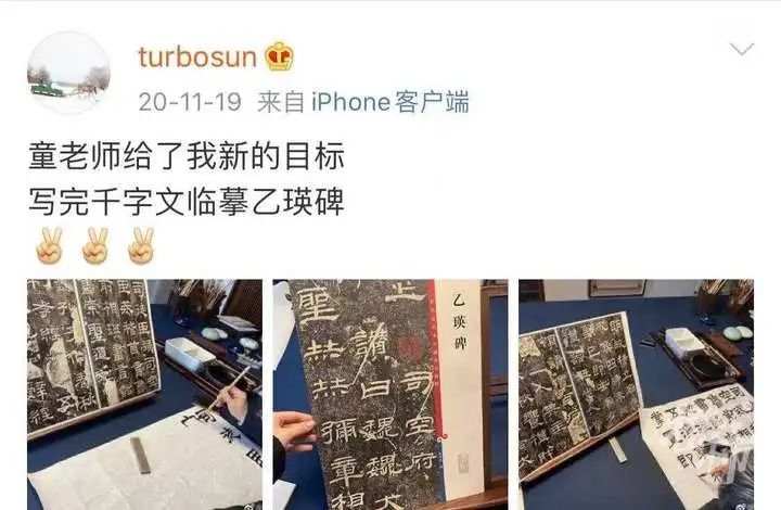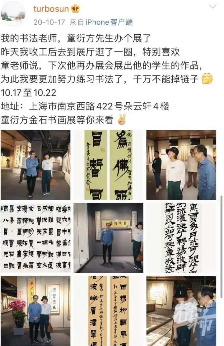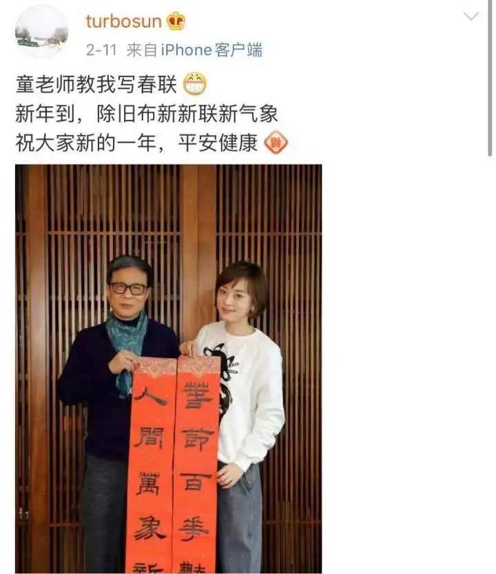 在孙俪的微博中,经常可以看到晒她与书法老师童衍方的交集,比如过年写春联,去上海参观老师展览等等。