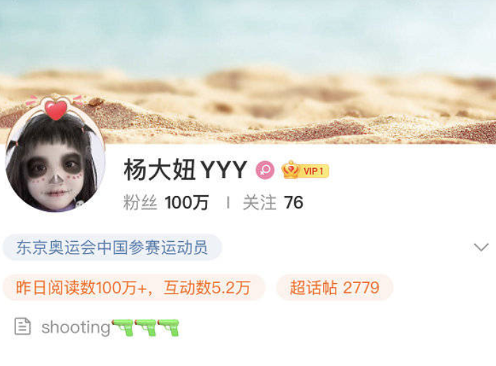 又甜又犀利,00后的杨倩了不得了! 3天射落两块金牌,而她的微博@杨大妞YYY 也从夺冠前的几百个粉丝上涨到了100万!