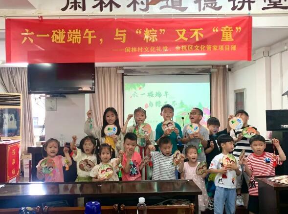 余杭区鸬鸟镇雅城村文化礼堂开展了一场以“品味端午,传承文明”为主题的端午节活动。