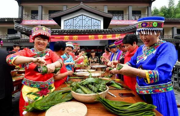 乾潭镇下梓村举办“浓情端午,情暖邻里”包粽子比赛。