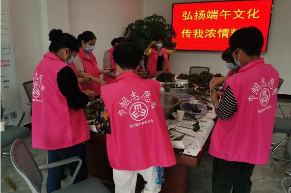 塔山村妇联组织妇女志愿者在村文化礼堂开展“弘扬端午文化,传我浓情粽香”包粽子活动。
