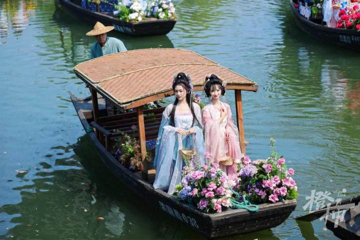 在美妙的乐曲中,“百花神”携“十二花神”乘坐氦气球沐风而上“天女散花”;随后,各“花神”登上鲜花装饰的摇橹船,在河渚街水域开启水上巡游,唯美浪漫的画面为现场游客献上一场视觉盛宴;在深潭口古戏台,祭花神仪式沿袭花朝传统,祈求花木繁盛、国泰民安。