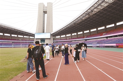 很快,本次“亚运城市文化体验”活动的行程到了最后一站,也是从历史到现代的跨越一站:黄龙体育中心。