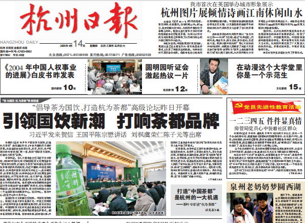 回望2005年4月,中国(杭州)西湖国际茶文化博览会召开。会议的一项重要成果是发表了《杭州宣言》:茶为国饮,杭为茶都。
