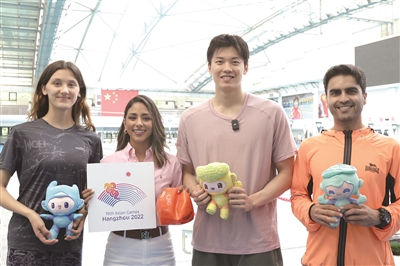 5月20日一大早,都市快报和体坛报联手邀请三名“洋主播”走进浙江竞技体育大本营——浙江体育职业技术学院的羽毛球、体操、重竞技、游泳、田径等训练场馆,近距离观摩运动员备战亚运的日常。