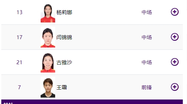 中国女足首发:1-朱钰、4-汪琳琳、5-刘艳秋、8-姚伟、11-王珊珊、15-陈巧珠、9-沈梦雨、13-杨莉娜、17-闫锦锦、21-古雅沙、7-王霜。