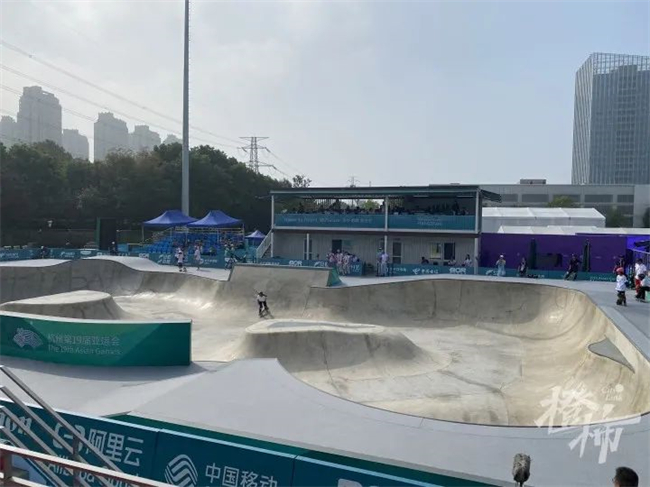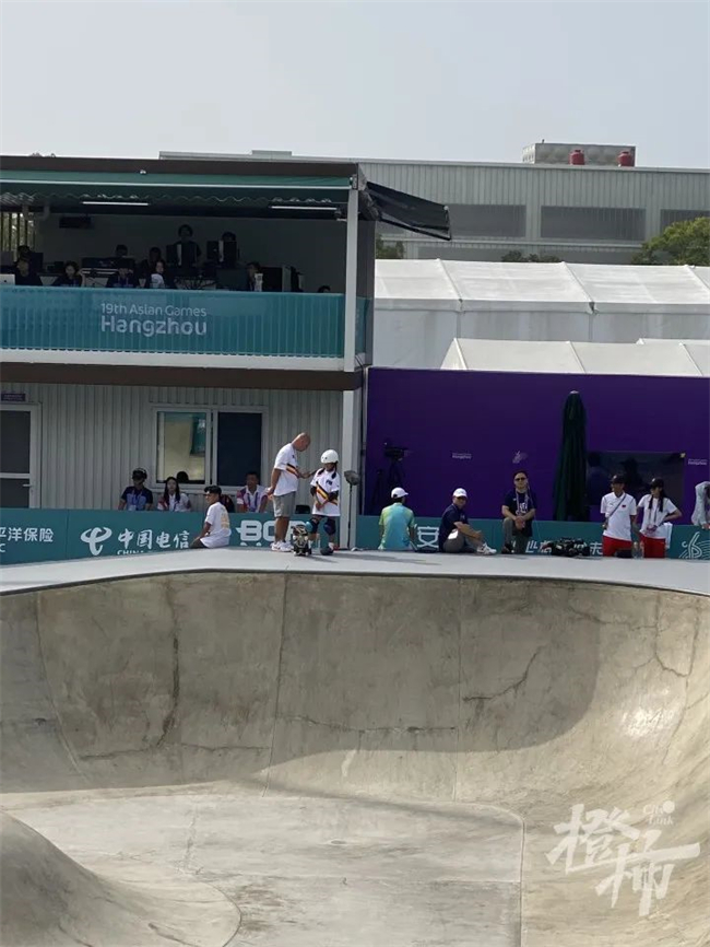 今天参加滑板项目女子碗池决赛的选手年龄都很小,很多观众说,有些选手看上去还萌萌的,没想到小小年纪就在亚运会赛场上展示自我。