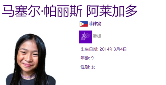 其中,年龄最小的菲律宾选手马塞尔•帕丽斯•阿莱加多,出生于2014年3月4日,今年才9岁,她是今天参赛年龄最小的选手,也是本次杭州亚运会年龄较小的选手之一。